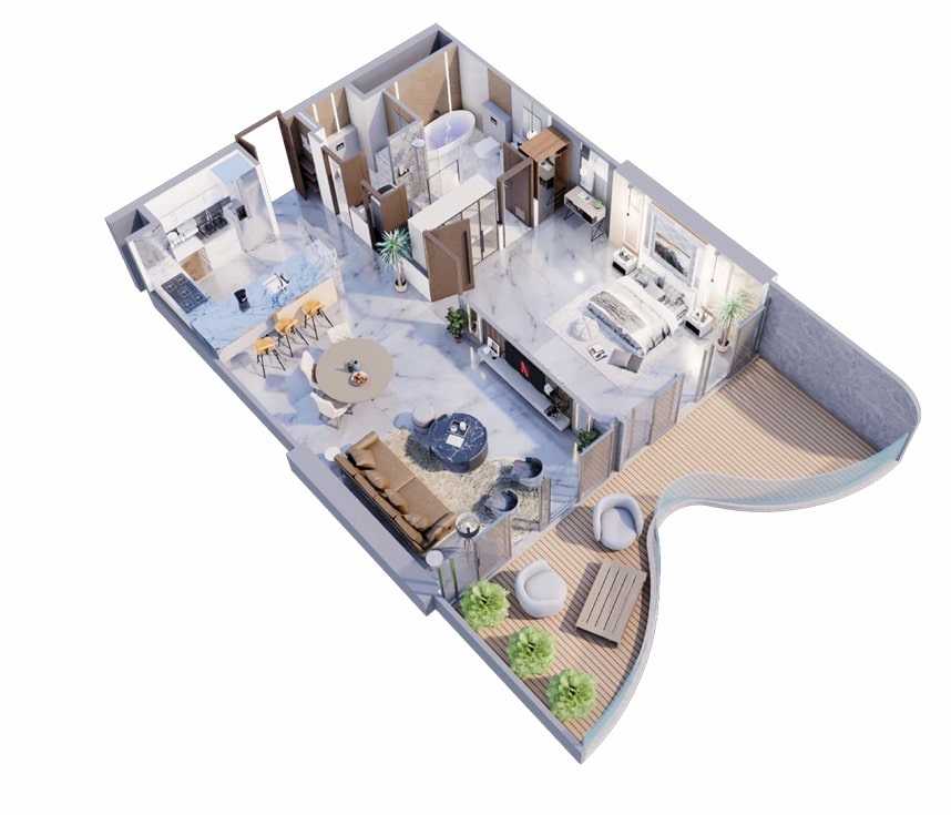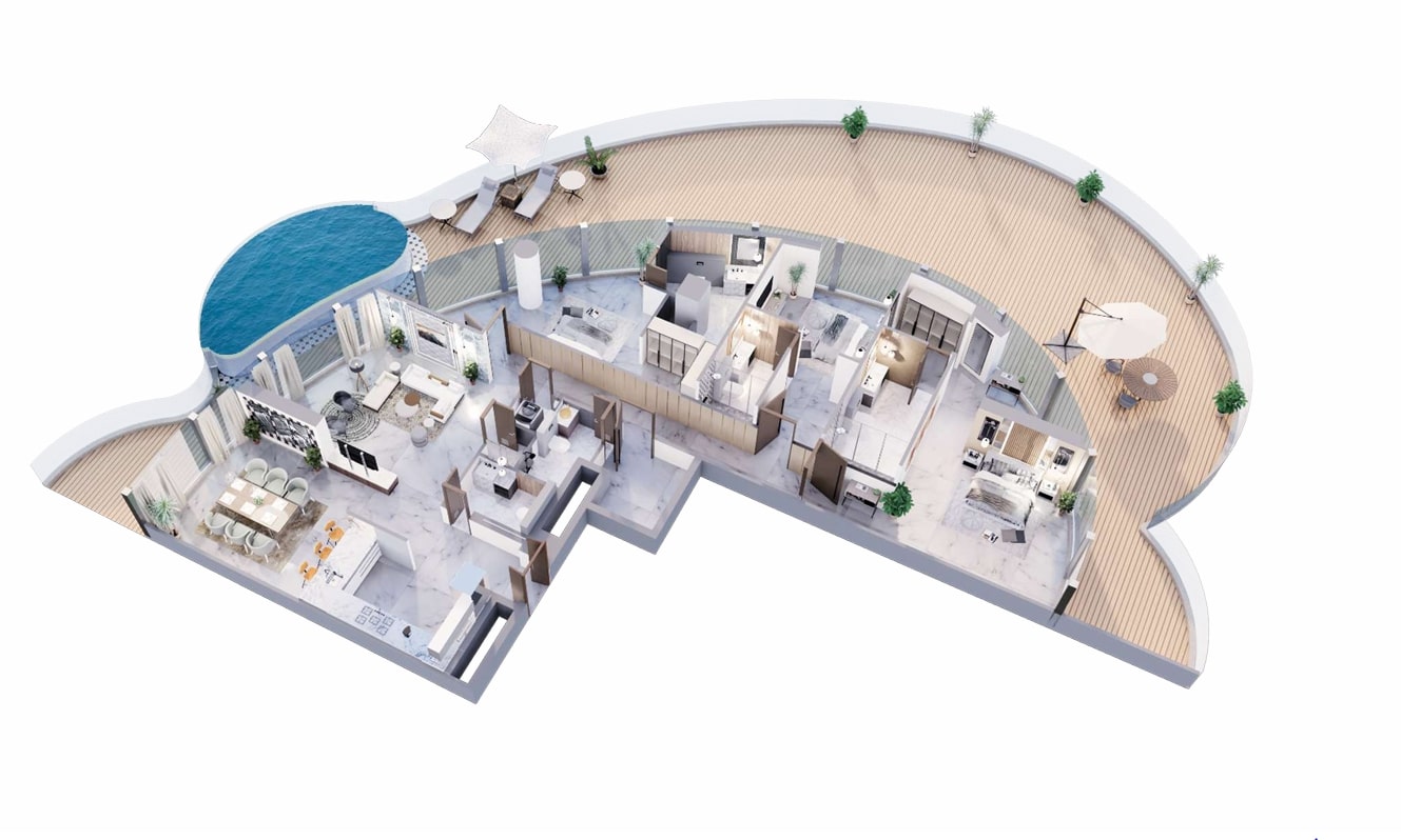 Aqua Arc is a prestigious residential development by BNW Developments, situated on Al Marjan Island in Ras Al Khaimah. This architectural masterpiece offers a blend of luxury apartments, townhouses, and penthouses, designed to provide an unparalleled living experience amidst serene landscapes and the tranquil waters of the Arabian Gulf.